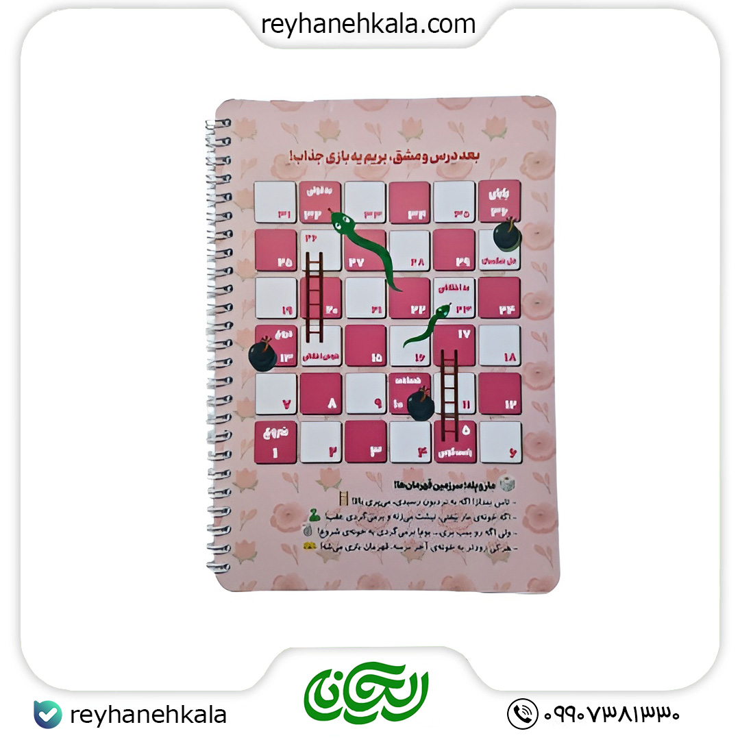 بازی مار و پله: در پشت جلد، یک صفحه کامل بازی مار و پله طراحی شده که لحظات مفرحی را برای استراحت بین درس و مشق یا در زنگ تفریح فراهم میکند.